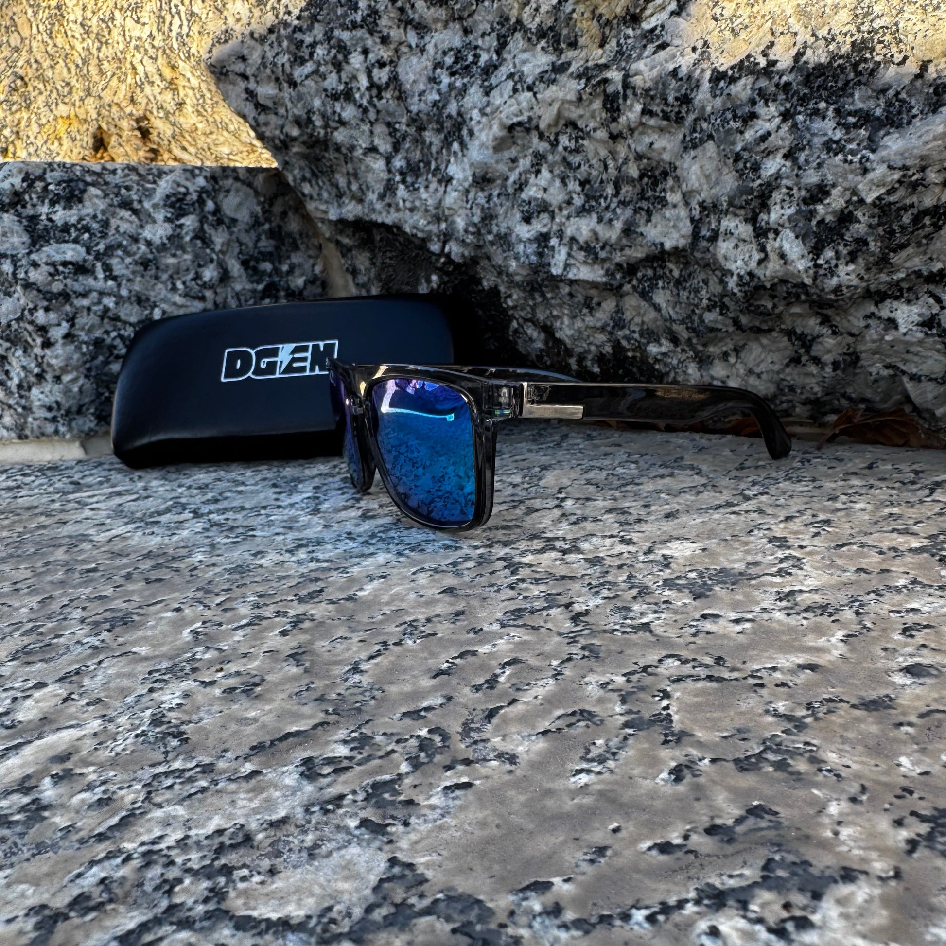 Glossy translucent frame Lightweight, durable, and made to flex with your lifestyle. Reflective blue-mirror tint mirrors the calm blue of a perfect lake day while keeping your eyes cool and protected. Stainless steel “DGEN” accent A subtle nod to original energy and motion, wherever your board or boat takes you.